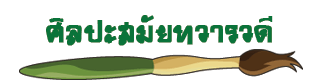 ทวารวดี เป็นชื่อเรียกศิลปะวัตถุที่สร้างขึ้นในช่วงระหว่างพุทธศตวรรษที่ 10-12 และได้พบหลักฐานว่าอาณาจักรนี้มีศูนย์กลางอยู่บริเวณจังหวัดนครปฐมในปัจจุบัน สถาปัตยกรรม ส่วนมากเหลือให้เห็นเพียงฐาน ซึ่งสร้างด้วยอิฐ หิน ศิลาแลง ส่วนบนมักจะทำด้วยไม้ได้ผุพังไปตามกาลเวลาประติมากรรม ได้แก่ พระพุทธรูปนั่งห้อยพระบาทปางเทศนาจิตกรรม เชื่อว่ามีการสร้างขึ้นบ้าง แต่ไม่พบมากนักเพราะวัสดุไม่คงทน