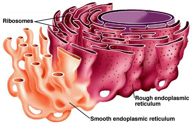 เอนโดพลาสมิกเรติคูลัมแบบผิวขรุขระ(RER) เป็นบริเวณไรโบโซมสังเคราะห์โปรตีน โดยโปรตีนที่ไรโบโซมสังเคราะห์จะบรรจุอยู่ใน เวสิเติล และมีการลำเลี้ยงออกไปสู่นอกเซลล์หรือถูกส่งต่อไปยังกอลจิคอมเพล็กซ์ หรือไปเป็นส่วนประกอบของ เอหุ้มเซลล์เป็นต้น เซลล์ที่มี REA มาก คือ เซลล์ที่ผลิตโปรตีนสำหรับใช้นอกเซลล์ เช่น เซลล์ตับอ่อนที่ทำหน้าที่สร้างเอนไซม์ย่อยสารอาหารต่างๆ
