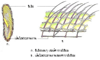 เชื่อมโยงระหว่างโคนซิเลีย เรียกว่า เส้นใยประสานงาน (coordindting fiber) ดังภาพ
