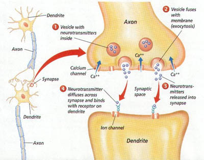 (Neurotransmitter) ซึ่งถูกสร้างขึ้นที่ถุงเล็ก ๆ ในไซโทพลาซึมตรงบริเวณปลายแอกซอนเราเรียนถุงที่บรรจุสารสื่อประสาทนี้ว่า