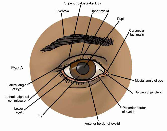 มีต่อมสร้างน้ำหล่อเลี้ยงกระจกตา ( cornea) และป้องกันแบคทีเรียขนตา ( eyelashes) ทำหน้าที่ป้องกันฝุ่นละออง ขนคิ้ว