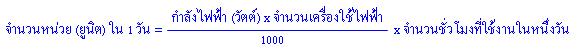สำหรับการใช้ไฟฟ้าของเครื่องใช้ไฟฟ้าใน 1 วัน เราสามารถใช้สูตรการคำนวณดังนี้