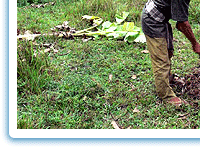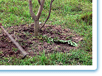 การใส่ปุ๋ยไม้ผล โดยการโรยปุ๋ยโคนต้นเป็นวงรอบตามรัศมีของทรงพุ่ม และทำการพรวนดินกลบเม็ดปุ๋ย ภาพคัดแปลงมาจาก http://board.palungjit.com/attachment.php?attachmentid=620152&d=1245892013 <<= กลับไปหน้าเดิม