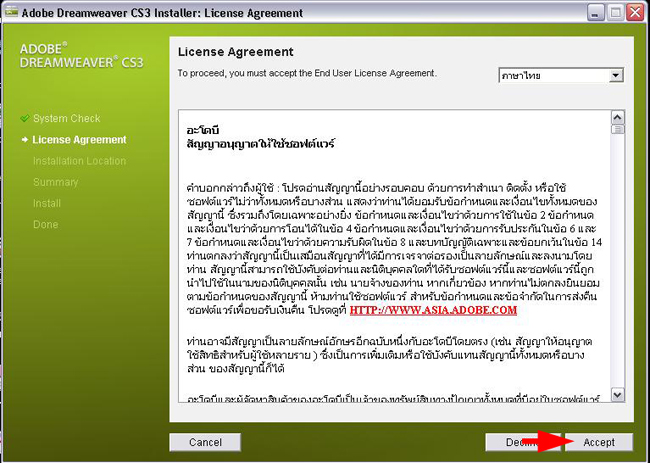 ขั้นตอนการติดตั้งโปรแกรม Dreamweaver |