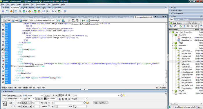 Show Code View เป็นหน้าต่างที่ให้แสดงเฉพาะโค้ด HTML ของหน้าเว็บเพจที่ กำลังทำงาน