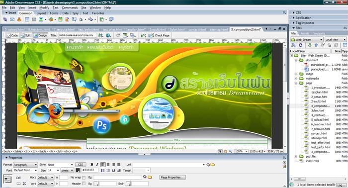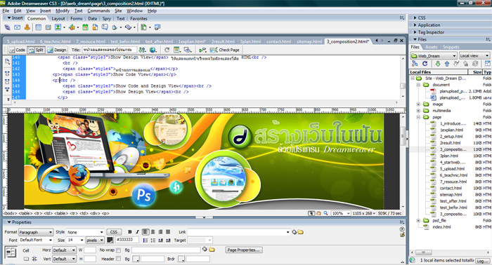 Show Code and Design View เป็นหน้าต่างที่แสดงทั้งโค้ด HTML และหน้าเว็บเพจที่กำลังทำงาน