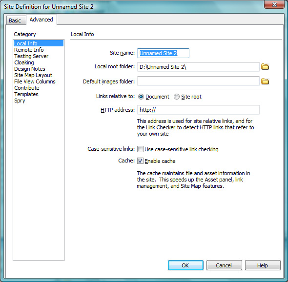 หลังจากที่สร้าง Folder เพื่อใช้เก็บข้อมูลแล้ว ขั้นต่อไปคือการสร้างเว็บไซต์ โดยการกำหนด Site Manager ให้กับเอกสาร โดยมีหลักการสร้างดังนี้ เลือก เมนู Site > เลือกคำสั่ง New Site
