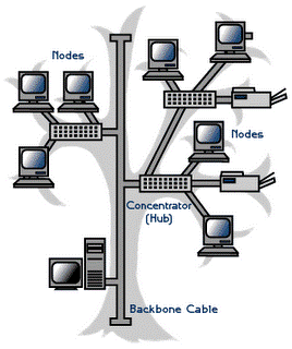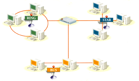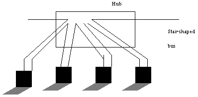 3.แบบ STAR SHAPE BUS : เป็นแบบที่เราใช้อยู่ในระบบ ETHERNET 10BASE-T