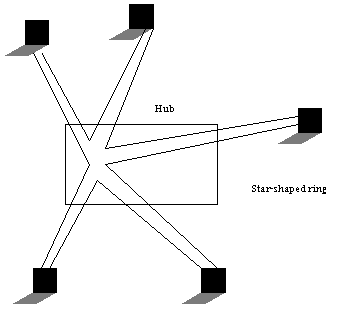 4.แบบ STAR SHAPE RING : เป็นแบบที่เราใช้อยู่ในระบบ TOKEN RING