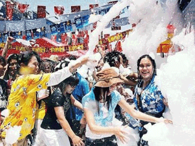 - เวลาบ่ายเด็กๆ และคนในวัยหนุ่มสาวเล่นน้ำสงกรานต์