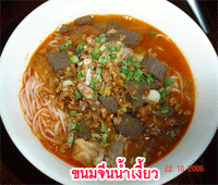นึ่ง ส่วนอาหารที่รู้จักกันดีได้แก่ ขนมจีนน้ำเงี้ยว ที่มีเครื่องปรุงสำคัญ