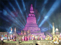เสด็จฯ มาสถาปนาพระบรมสารีริกธาตุและปลูกต้นศรีมหาโพธิ์ พร้อมเครื่องอิสริยยศ จำนวน 150-200 คน,