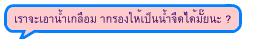 "การกรอง" เป็นวิธีแยกสิ่งเจือปนที่เป็นของแข็ง ซึ่งไม่ละลายน้ำออกจากน้ำ โดยที่สิ่งเจือปนดังกล่าว จะมีขนาดใหญ่กว่ารูของกระดาษกรอง จึงติดอยู่บนกระดาษกรอง มีน้ำ , สิ่งเจือปนที่ละลายน้ำและสิ่ง เจือปนที่ไม่ละลายน้ำแต่มีขนาดเล็กกว่ารู้ของกระดาษกรองเท่านั้นที่ผ่านไปได้ ดังนั้น น้ำหรือของเหลว ที่กรองได้จึงใสกว่าเมื่อไม่ได้กรอง