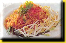 • แช่เส้นหมี่นานประมาณ  15  นาที  นำขึ้นวางตะแกรงให้สะเด็ดน้ำ  ตั้งกระทะด้วยนำมันไฟกลาง้างให้ร้อนจัด  จึงใส่เนหมี่ทอดทีละน้อยให้เหลืองกรอบ  ตักขึ้น  ทอดจนหมด  ทอดเต้าหู้ต่อให้เหลืองกรอบ  ตักขึ้นให้สะเด็ดน้ำมัน
