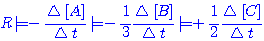 อัตราการเกิดปฏิกิริยาเคมีเฉลี่ย = อัตราการลดลงของ