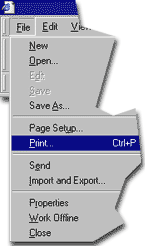 ส่วนของ Nescape Navigator สั่งพิมพ์ โดยเลือกที่ File > print แต่จุดที่แปลกจาก Internet Explorer คือคุณสามารถที่จะเห็นเค้าโครงคร่าวๆ ก่อนการสั่งพิมพ์หน้าเว็บเพจ โดยไปที่ File > print preview