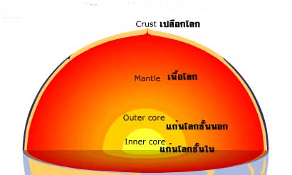 "เนื้อโลก" (Mantle) แก่นโลกชั้นนอก (Outer Core) และแก่นโลกชั้นใน (Inner core)