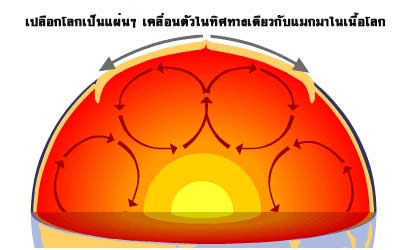 เปลือกโลกด้านนอกเย็นแล้ว ส่วนข้างในเป็นหินหลอมเหลว ใจกลางเป็นเหล็กหลอม