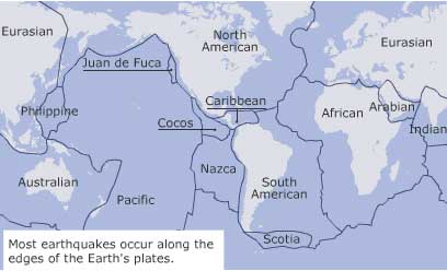 แผ่นดินไหวส่วนใหญ่จะเกิดที่บริเวณรอยต่อของแผ่นต่างๆ