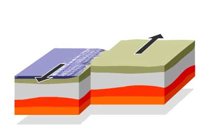 แผ่นเคลื่อนเบียดกัน ซึ่งจุดที่เกิดการเบียดหรือชนเรียกว่า "จุดโฟกัส" (focus)