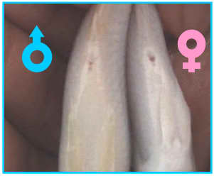 ปลาหอมขาวในระยะเล็กไม่สามารถแยกเพศได้ เมื่อเติบโตเข้าสู่ระยะเจริญพันธุ์โดยเฉพาะปลาหอมขาวที่ถูกเลี้ยงดูอย่างสมบูรณ์