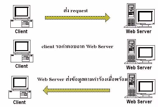 โดย client จะเรียกข้อมูลจาก server โดยการส่ง request